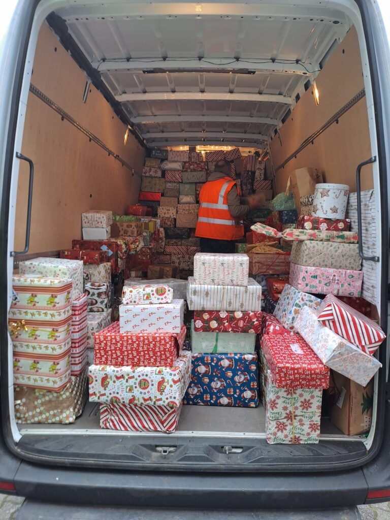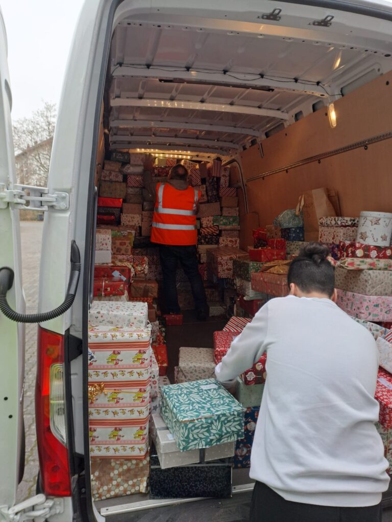 In dieser Woche war es soweit – die Stiftung Kinderzukunft holte die Päckchen an der Schule ab. Von dort aus machen sie sich auf den Weg nach Bosnien, Rumänien und in die Ukraine, wo sie Kindern zugutekommen, für die Weihnachtsgeschenke keine Selbstverständlichkeit sind.
